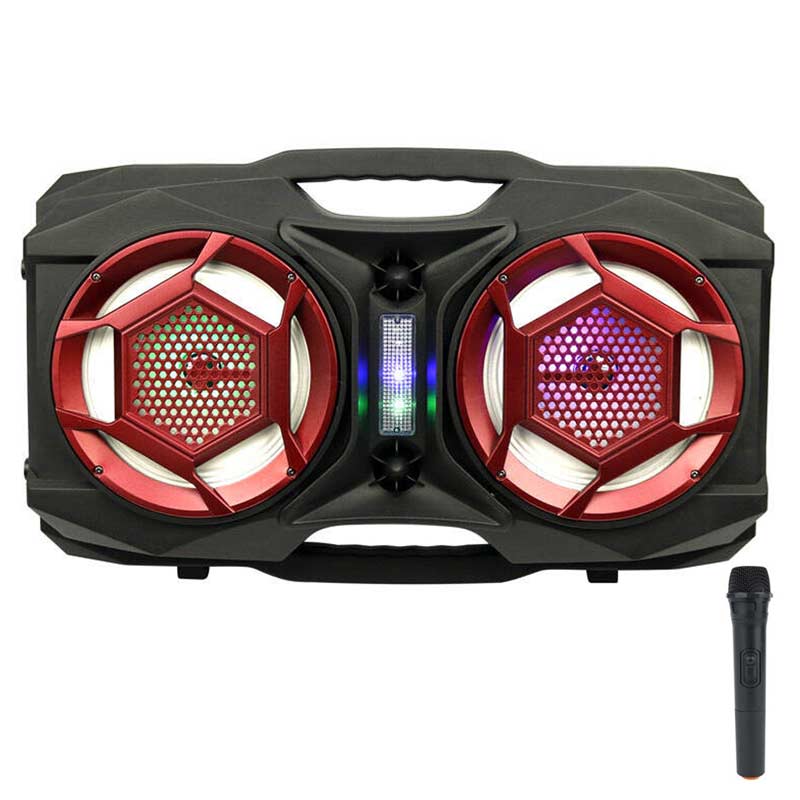 Дополнителни карактеристики: RGB осветлување, далечински управувач, FM радио, поддршка за USB и TF картички, како и безжичен микрофон и жичен микрофон за караоке.